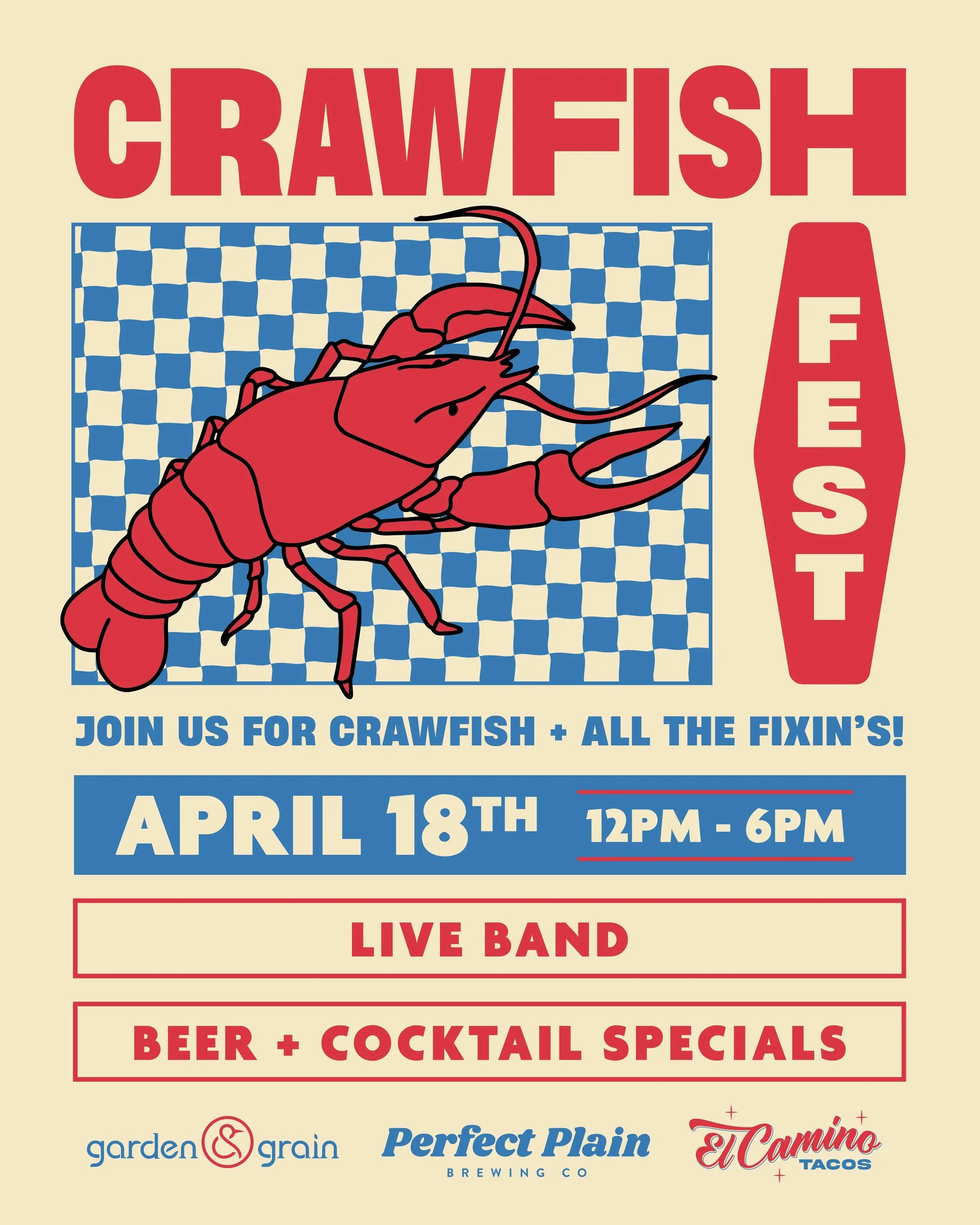 Back to All Events Crawfish Fest Saturday, April 18, 2026 11:00 AM 6:00 PM Perfect Plain Brewing Company 50 East Garden Street Pensacola, FL, 32502 United States (map) Google Calendar ICS
